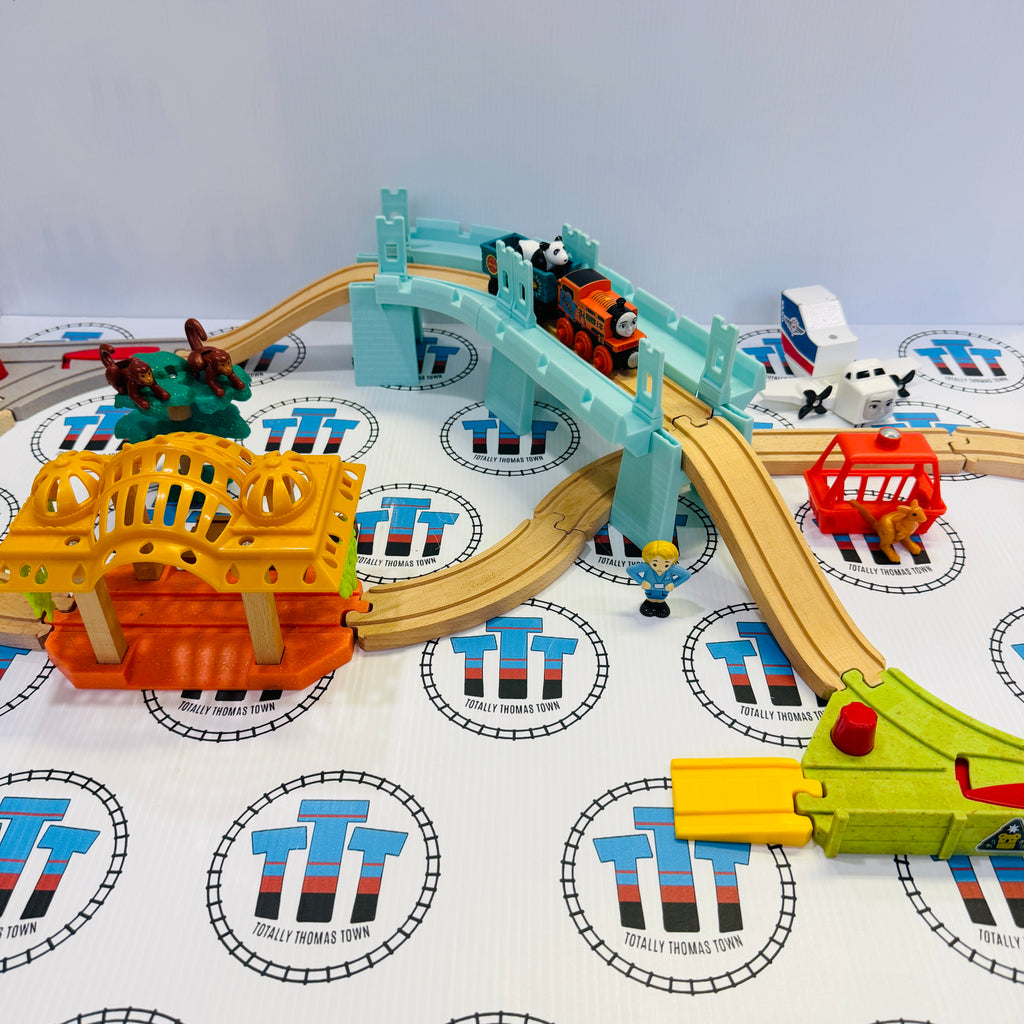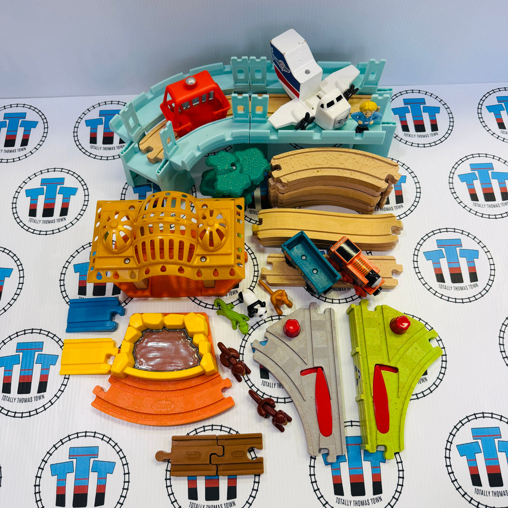 Big World Adventures Set with Nia, Isla & Cargo Car (Modified Layout/Faded Track) Thomas Wood Mattel - Used