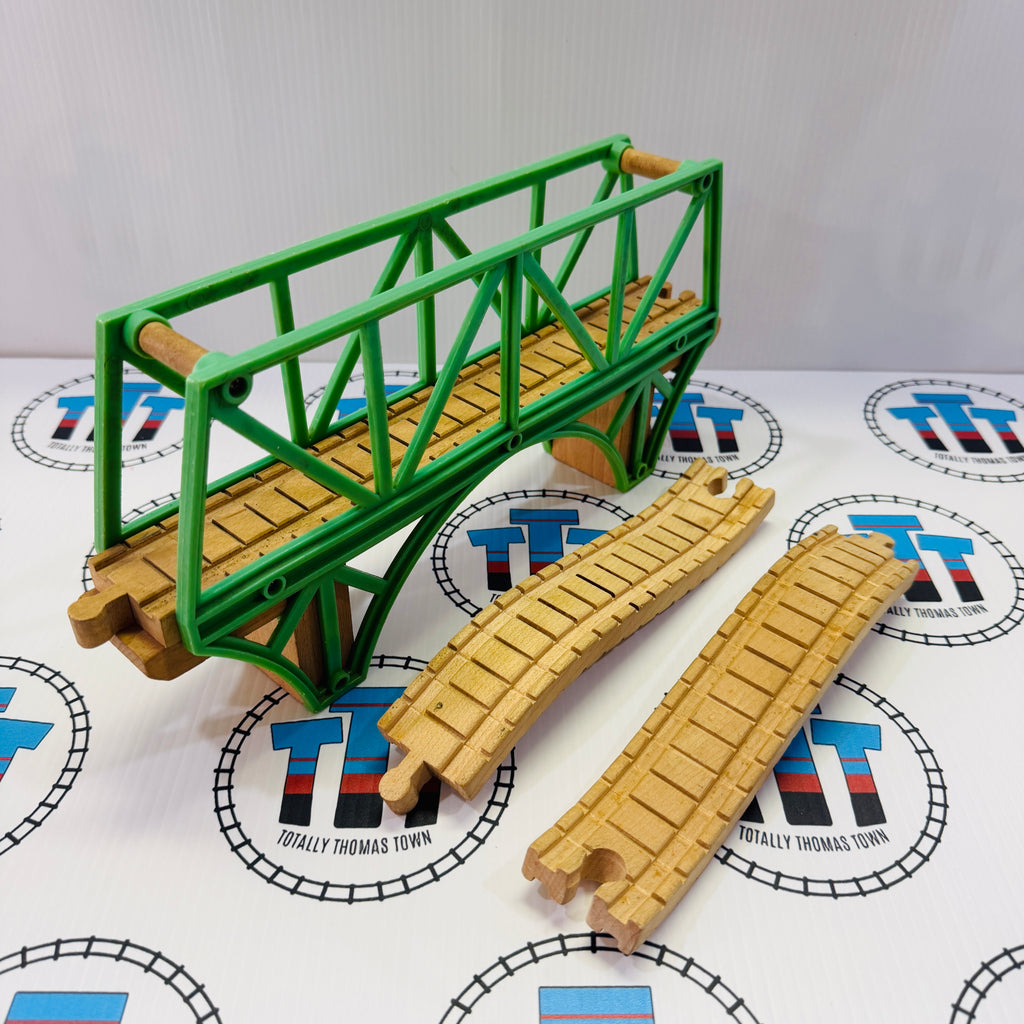 Sodor Bay Bridge Green Clickity Clack Track Fair Condition Marked Track Wooden - Used