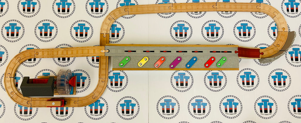 Thomas brand used music melody set as shown.  Listen to the music as trains cross. Track has no road on back, one 8" straight track stamped as shown