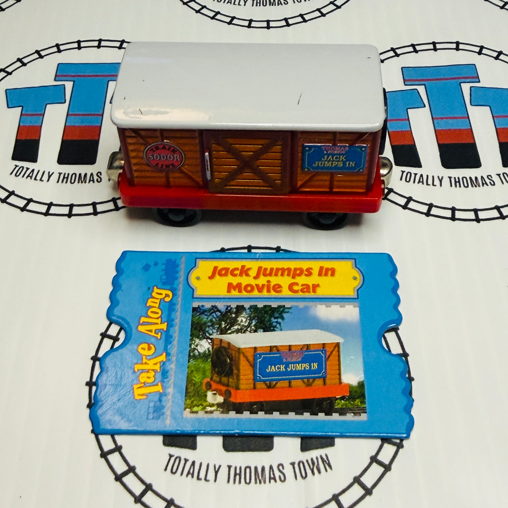 Thomas brand used take n play movie car. Look inside and open and close the door to watch slides!